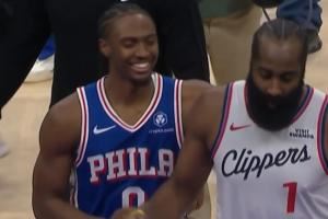 > 气着呢!马克西一路搂着哈登试图寒暄 哈登左右游走没心情理!