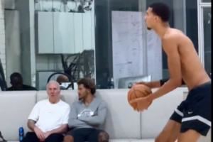 > 心念爱徒!波波维奇场边与索汉并坐 观看文班亚马投篮训练!