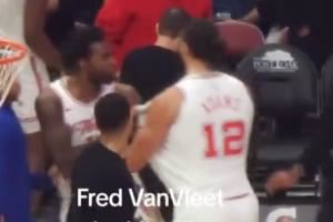😳伊森昨日暂停疑似和海王冲突 两人互相拉拽 火箭队友一脸懵